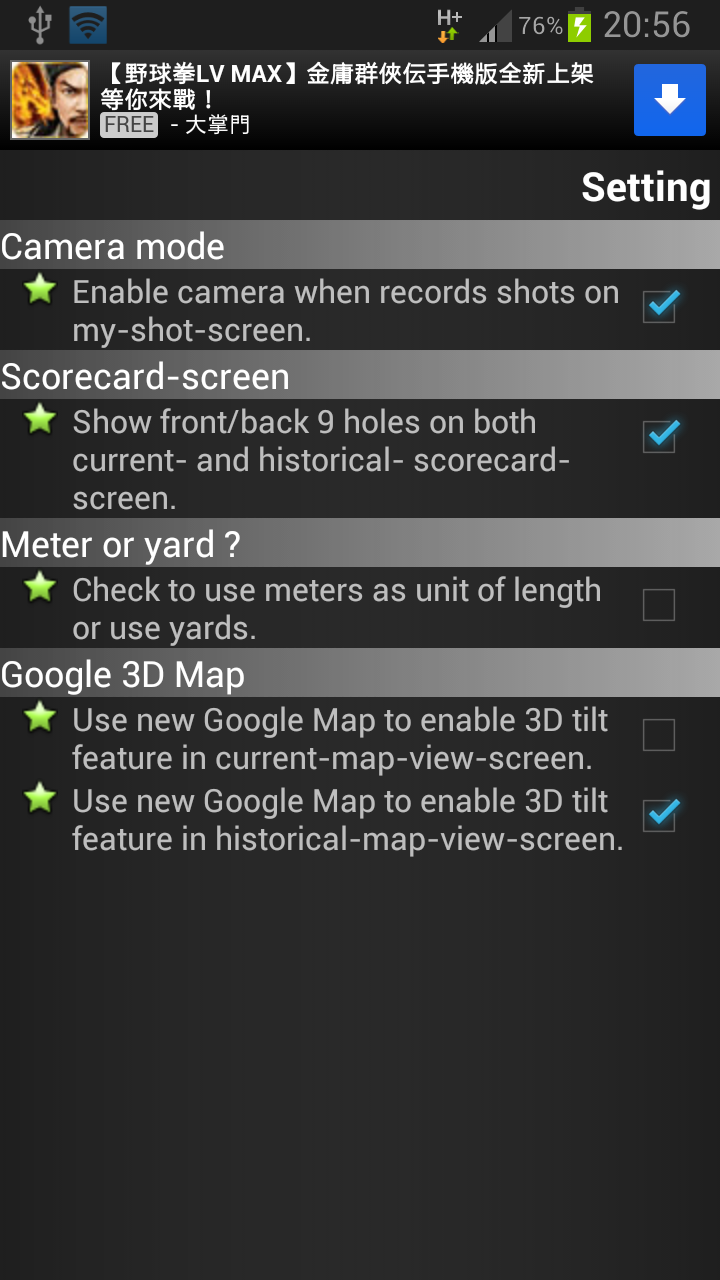 Here is Golf GPS Scorecard global setting screen